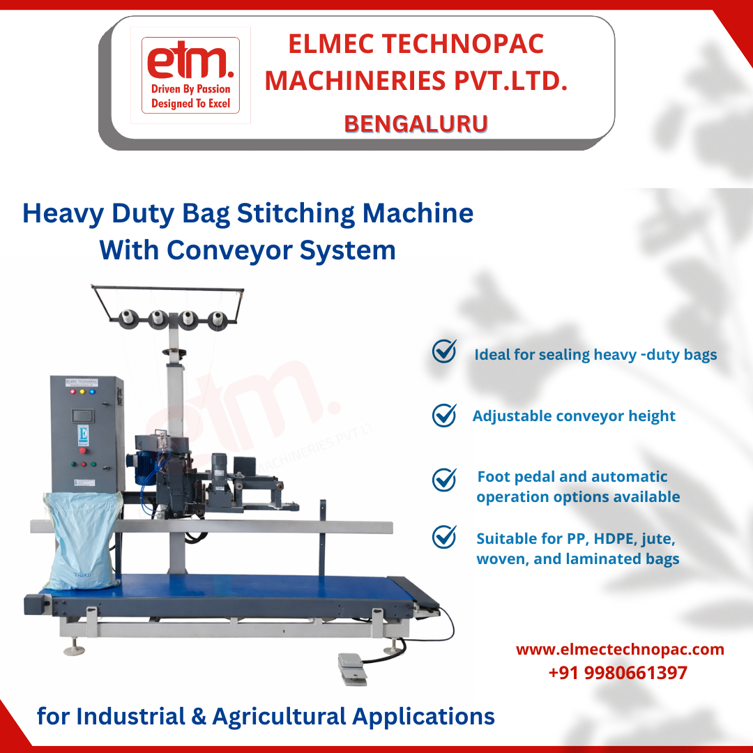 #Heavy Duty Bag Stitching Machine with Conveyor System# Industrial Bag Closing #Machine manufacturer in Bangalore # elmec # bag stitching conveyor system# industrial bag sewing machine#Pouch packing machine