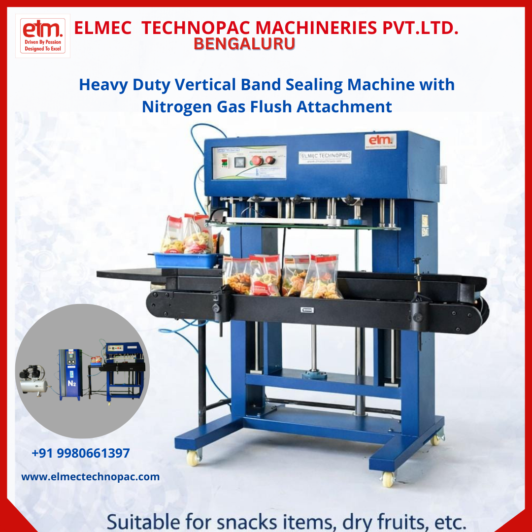Elmec Technopac Machineries Pvt. Ltd., a trusted machine manufacturer in Bangalore, has successfully supplied a Heavy Duty Band Sealing Machine with Nitrogen Gas Flush attachment to Soubhagya Foods for Murukku packing. The machine is tested, ready, and running smoothly, ensuring excellent sealing quality and extended product shelf life.
