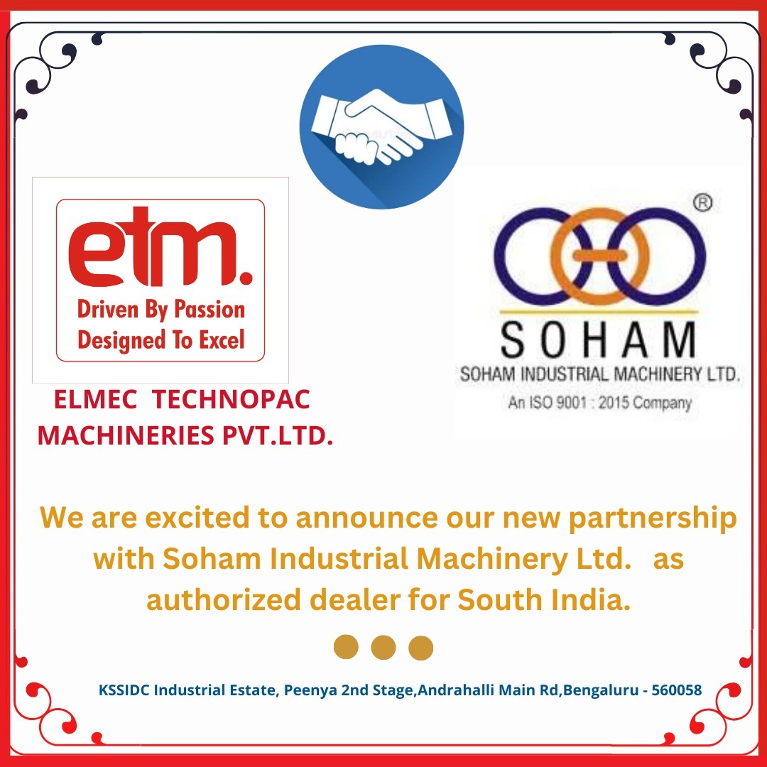 We are thrilled to announce that our new partnership with Soham Industrial Machinery Ltd. as our authorized dealer for South India. This collaboration marks the beginning of a new journey, expanding our reach and strengthening Elmec\'s presence in the area . With Soham\'s extensive network and industry expertise, we hope to provide more South Indian enterprises with our superior packing solutions.